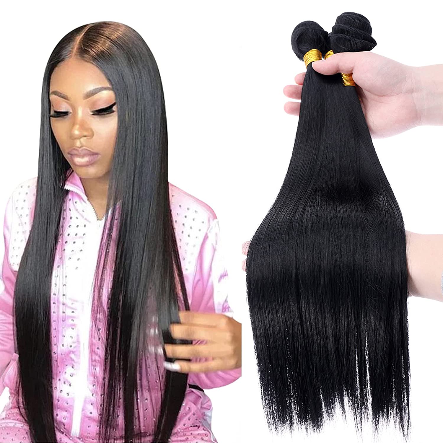Black Straight Human Hair Bundles For Women Unprocessed Brazilian Hair Wave Bundles Natural Wavy Hair Extensions 20inch Walmart Canada